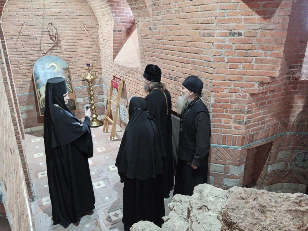 Когда вошли в монастырские ворота, мы увидели вытянутое, местами недостроенное здание со многими трещинами и оголенным кирпичом, но в кровле сквозь строительные леса уже проглядывался купол и крест.